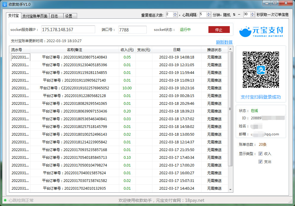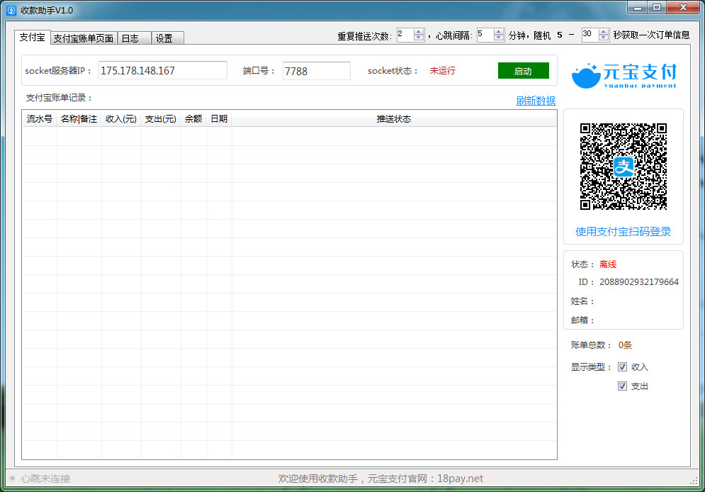 1、打开收款助手电脑端软件,使用手机支付宝扫码登录,第一次使用时,登录二维码加载可能比较慢,请稍微等待一下,或者重启软件。