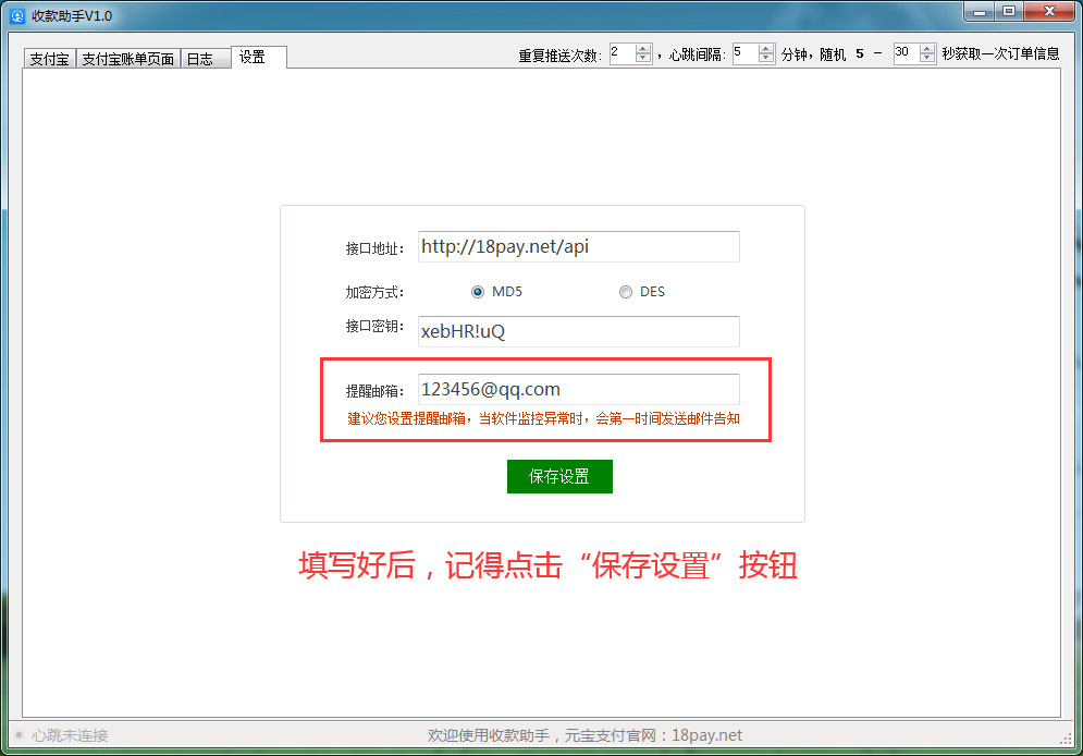 2、可以在设置里填写邮箱账号,当软件监控异常时,平台会给您发送邮件通知。